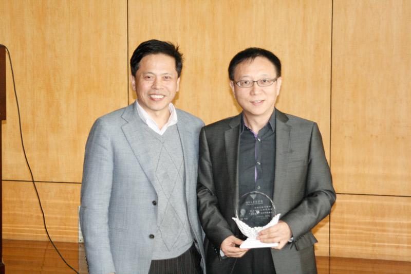 最后,段树民院士为两位教授颁发了“杏林论坛”的水晶纪念牌。